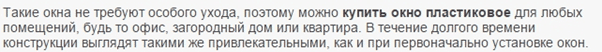 Такими текстами я называю материалы, где ключевые запросы вставлены в том виде, в котором их скопировали из вордстата. Т.е. в обычной брошюре или речи, вы бы не встретили слова «купить окно пластиковое», фраза прозвучала бы так: «купить пластиковое окно». Поисковые системы одинаково хорошо воспринимают как первый вариант, так и второй, но лучше все-таки говорить по-русски. =)