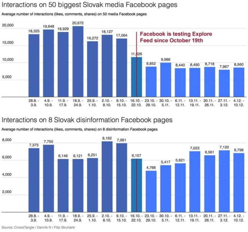 Трафик СМИ Словакии до и после тестового запуска «Фейсбуком» нового алгоритма. Источник: Filip Struhárik