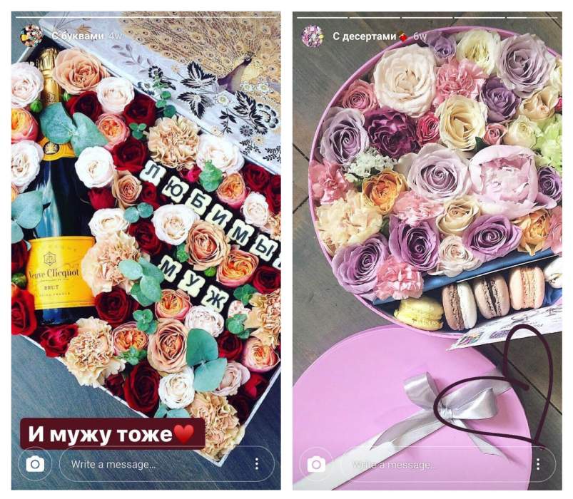 Пример: студия флористики удачно использует инструмент Stories для более подробной демонстрации ассортимента, особенно тематического и приуроченного к праздникам